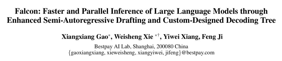 论文中提出的 Falcon 方法是一种增强半自回归投机解码框架,旨在增强 draft model 的并行性和输出质量,以有效提升大模型的推理速度。Falcon 可以实现约 2.91-3.51 倍的加速比,在多种数据集上获得了很好的结果,并已应用到翼支付多个实际业务中。