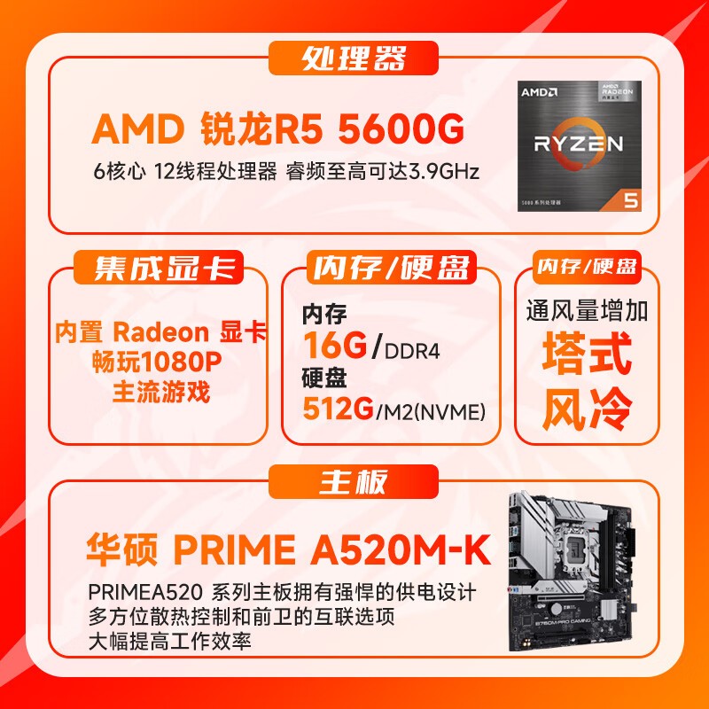 商用办公电脑主机 限时优惠!圣旗R5-5600G处理器仅售2199元