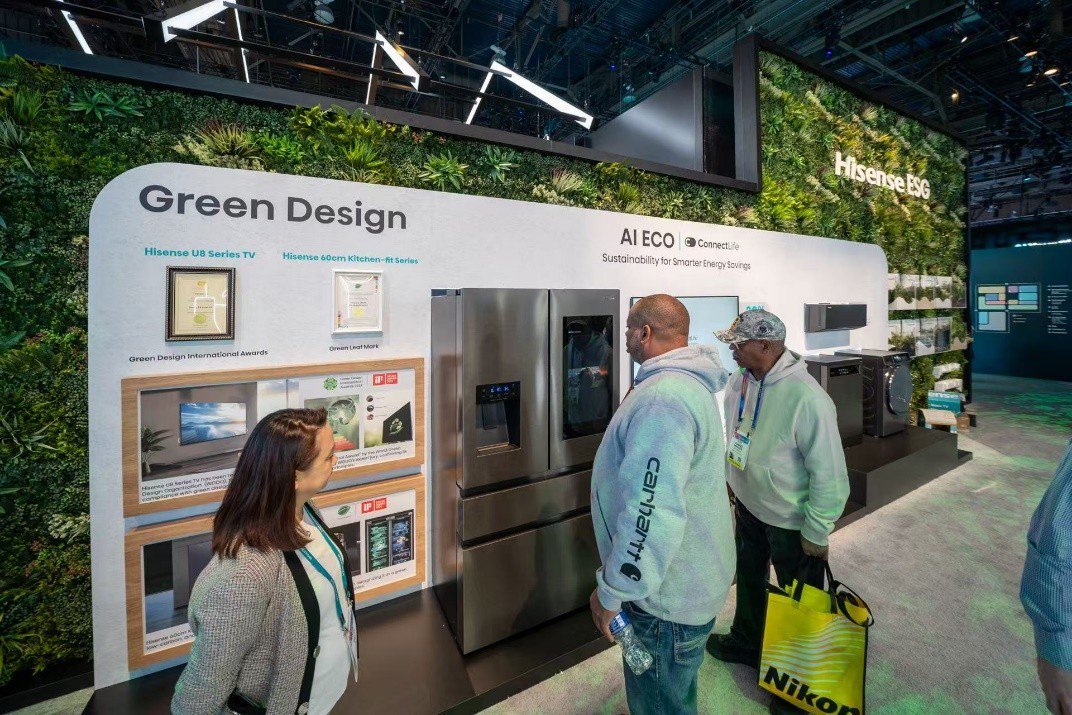 绿色是CES2025的重要议题,海信持续进行智能化和绿色科技创新,让未来可持续生活方式触手可及。展会现场,海信展示了应用于整机产品的可再生材料、非石油基材料、咖啡渣材料等环保材料,诠释对于绿色可持续发展的坚持。今年海信更是专门设置AIECO展区,直观的展示了海信电视、冰箱、洗衣机一键开启智能节能模式后的节能效果,其中洗衣机开启AIECO功能最高可节能72%。