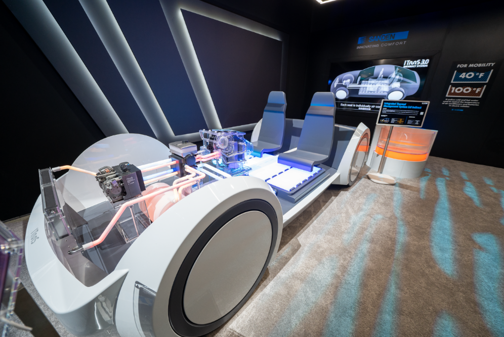 海信旗下三电公司展示汽车综合热管理系统,有效解决电动汽车冬季续航衰减和使用自然冷媒时的驾驶舱内的安全性问题,在提高能源效率的同时增强安全性。