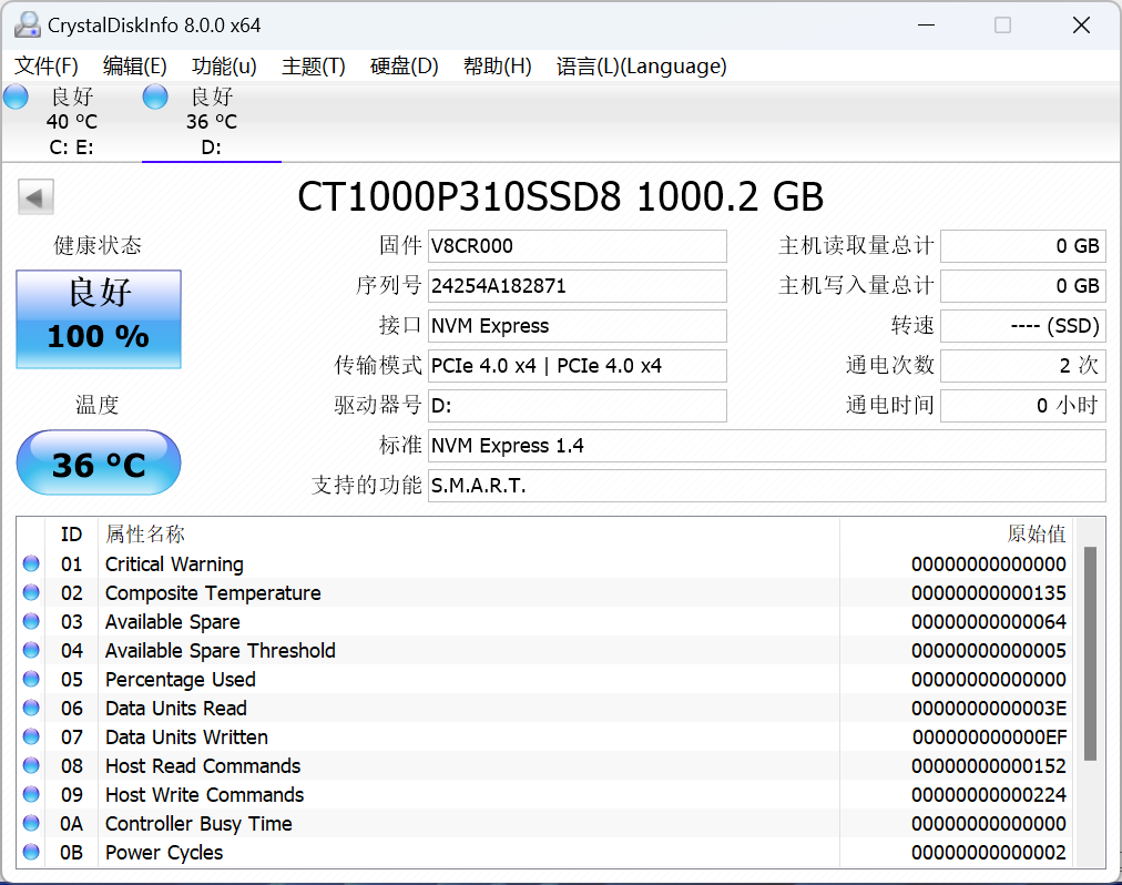 2. Crucial英睿达P3102280 Gen4 NVMe固态硬盘1TB