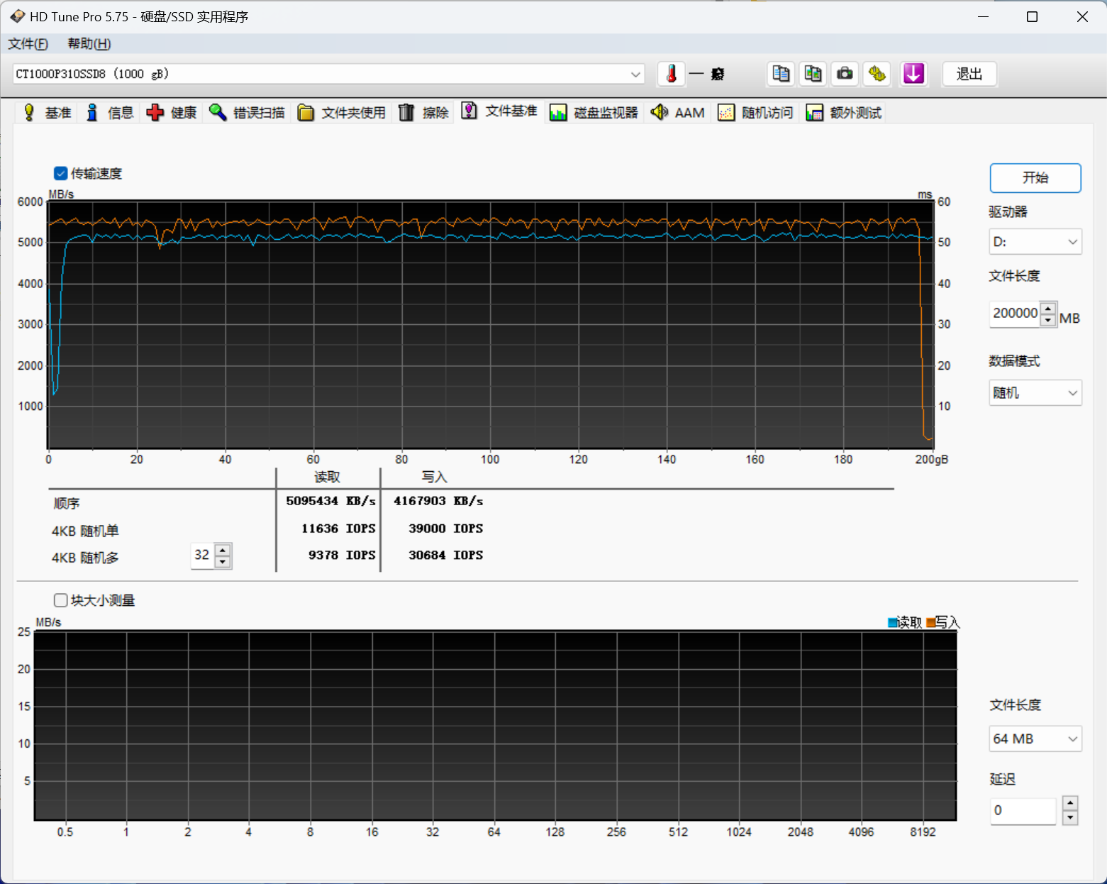 在200GB随机数据读写测试当中,Crucial英睿达P310固态硬盘全程保持高速稳定,表现非常不错,稳定性素质过硬。
