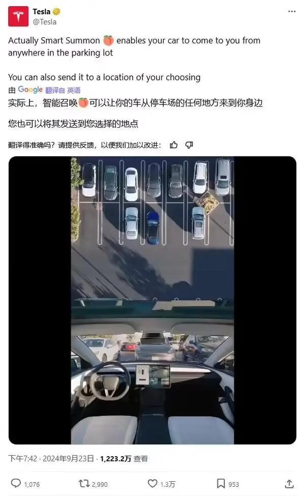 IT之家注:特斯拉于 2024 年 9 月推出 Actually Smart Summon 功能,车主可以通过手机端 App,远程移动车辆。
