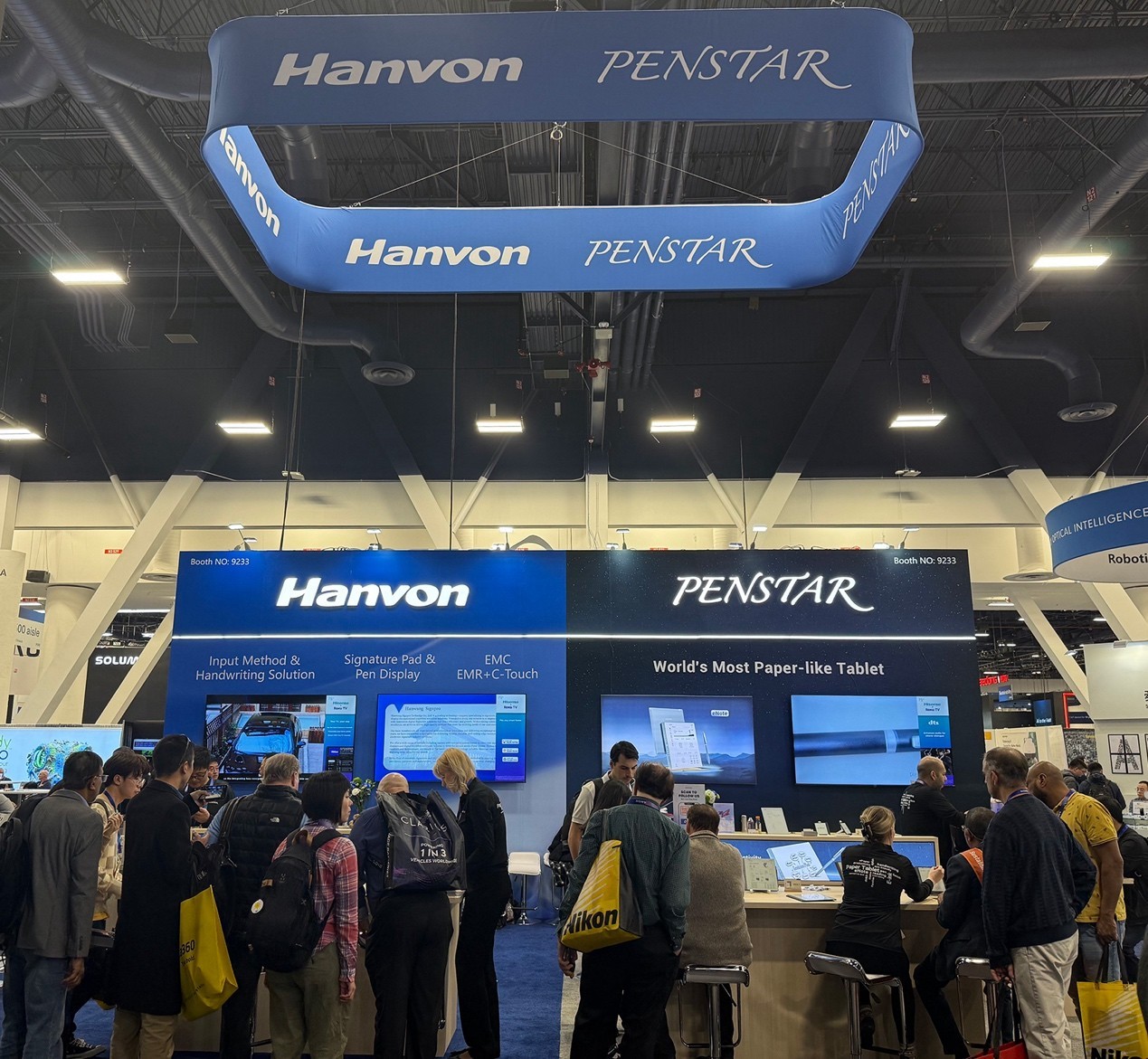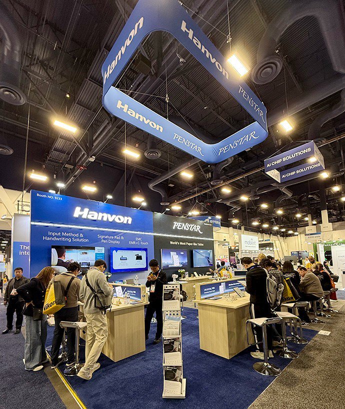 1月7日—10日,CES 2025全球消费电子展在美国拉斯维加斯会议中心举行,汇聚了全球顶尖消费电子产品和人工智能技术展示。汉王科技作为中国人工智能先行者,以“共触未来”为主题,在本次CES上首次公开展示了全球首颗EMC磁容触控双模芯片——HW0888、Penstar海外电纸本品牌,以及数字签批、手写&OCR识别技术和仿翼智能飞行机器人等创新应用产品,向全球展示了智能交互的关键原创技术和全面产业布局。