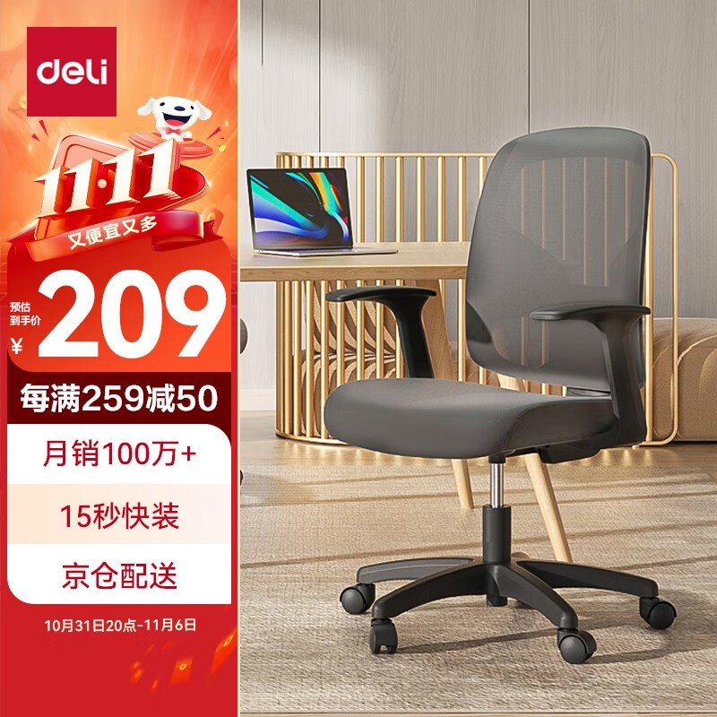 得力4900S人体工学靠背办公椅 219元到手还包邮