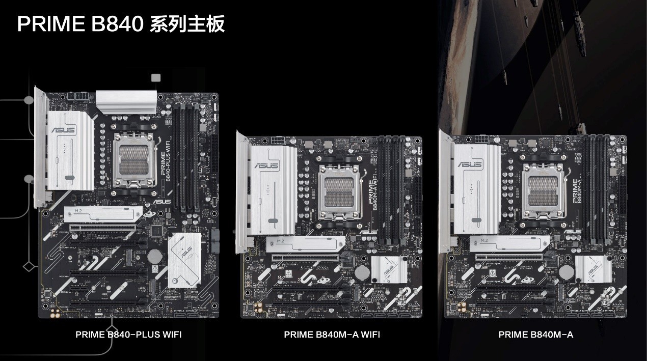 而针对不打算超频、安装PCIe5.0 M.2SSD或显卡的玩家,华硕B840系列主板绝对是不容错过的选择。其兼具绝佳质量与亲民价格,并涵盖ATX和M-ATX板型,全方位满足各类所需,提供强劲的性能体验。