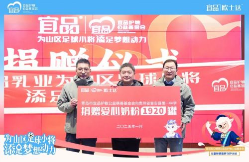 1月6日,宜品护敏基金会联合宜品乳业集团、宜品绵羊奶走进贵州省普安县践行爱心公益,为山区青少年足球队捐赠价值57.16万元的爱心物资,包括奶粉、书包、冲锋衣等,精准助力足球小将们茁壮成长,为他们的梦想保驾护航。