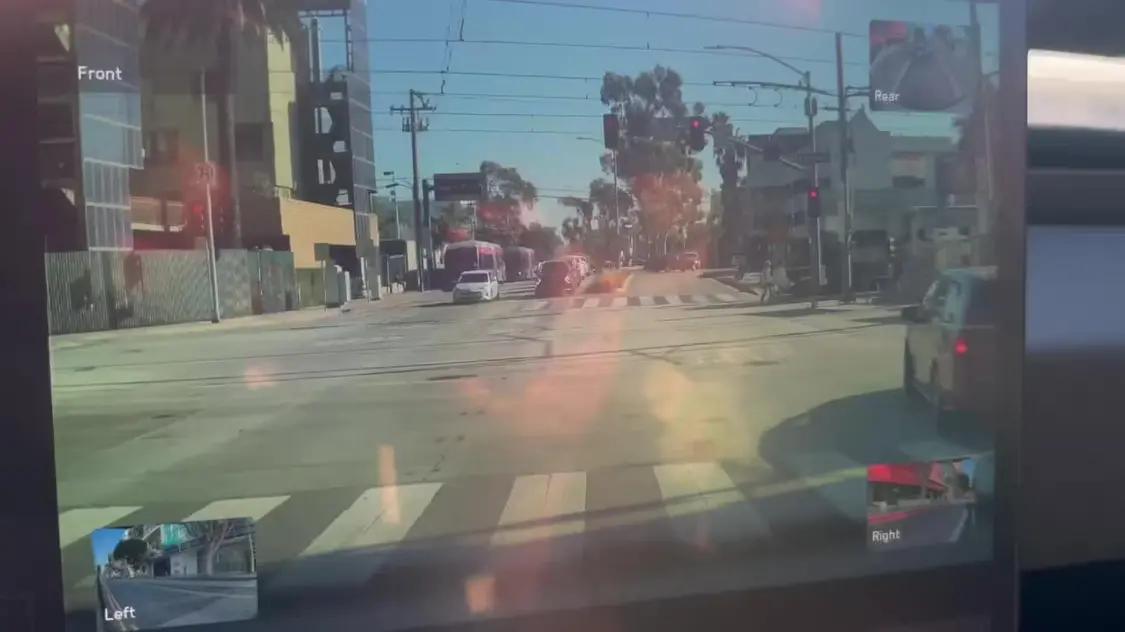 事件发生在加利福尼亚州的圣莫尼卡,当时人工智能公司 Rabbit 的创始人 Jesse Lyu 驾驶着他的特斯拉电动汽车在等红灯,车辆启用了 FSD 辅助驾驶功能,车载摄像头记录下了整个过程。