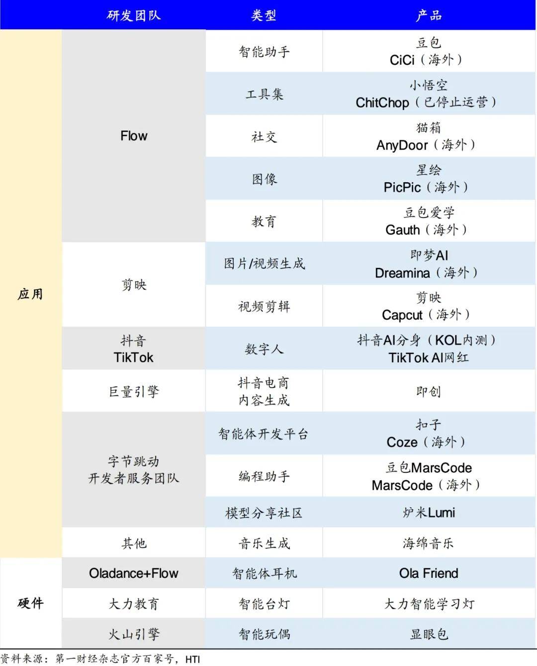 根据《第一财经》的统计,字节跳动目前正常运营的AI应用大约有20款,绝大部分是2024年以后发布的。