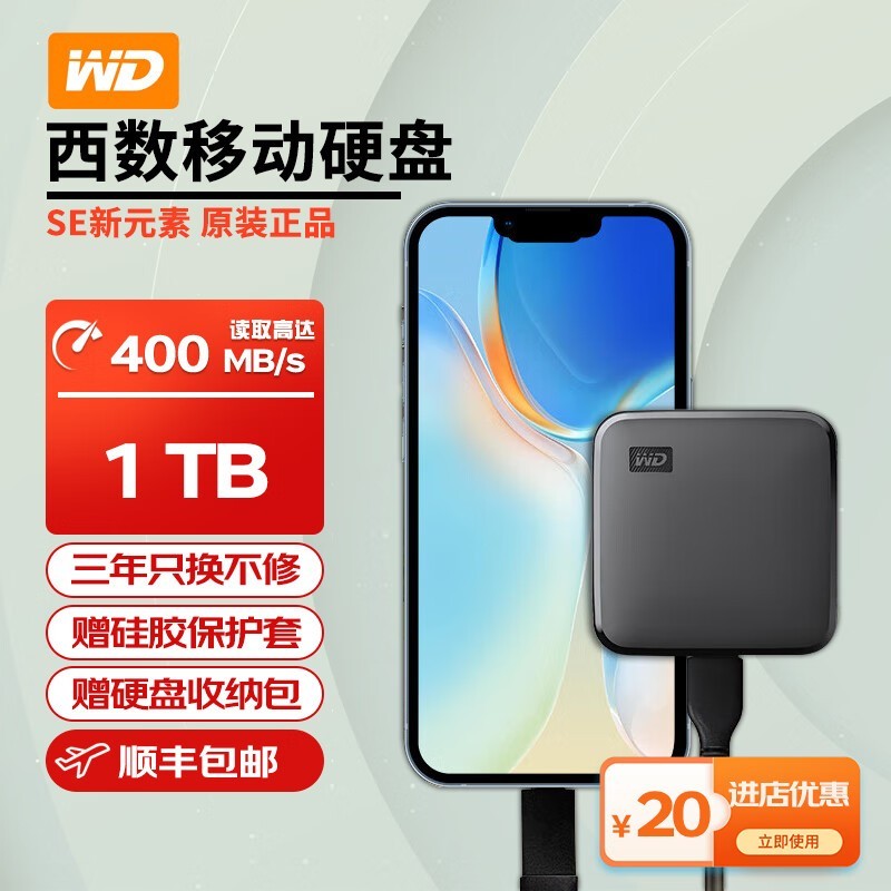 西部数据1TB USB3.2移动硬盘,到手价419元!