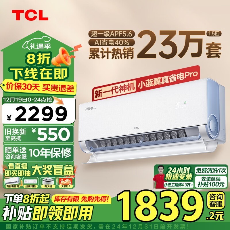 TCL 真省电Pro系列空调大促来袭!到手价1661元