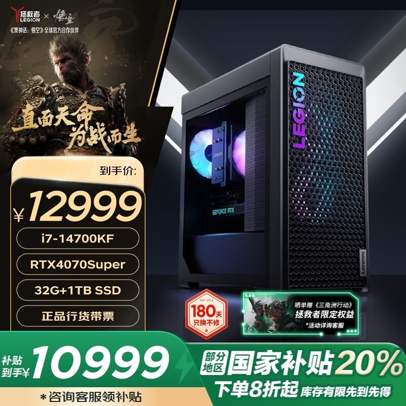 联想拯救者刃7000K游戏电脑主机仅10999元