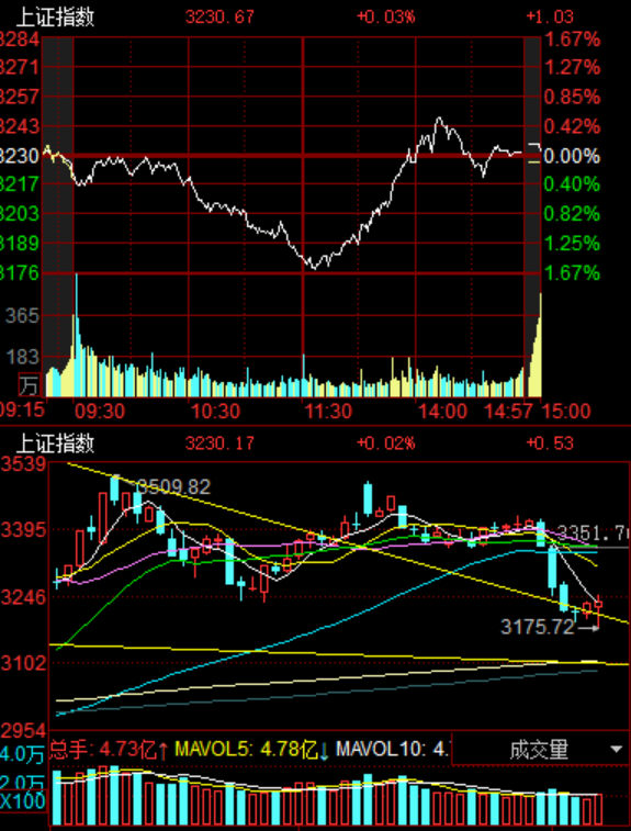 这里多关注成交量的变化,前面讲过,1万亿就是地量地价。今天回升到了1.26万亿了,其实是正常的变化,不能把今天的低点看做底,底部前两天就已经探明了,今天只是再次杀跌确认,这里有强支撑,这里值得博弈!所以,成交量上来了。