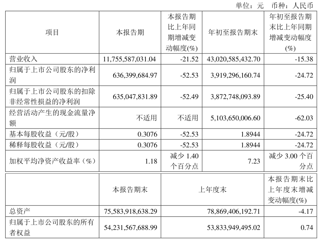 中国中免前三季度业绩显示,该公司2024年前三季度实现营收430.21亿元,同比下降15.38%;实现归属于上市公司股东的净利润39.2亿元,同比下降24.7%。