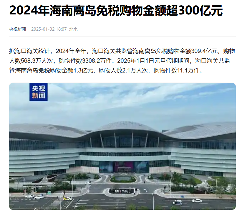 应该说,相比旅游人次等比较虚的数据,2024年海南免税消费数据基本反映了去年一年海南旅游零售业的真实情况。