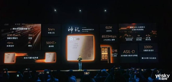 2024年7月27日,李斌宣布,蔚来自研全球首颗5nm智驾芯片“神玑NX9031”流片成功,该芯片采用32核心CPU架构和全链路超感增强自研图像信号处理器ISP,内置LPDDR5x8533Mbps速率内存,搭配自研推理加速单元NPU,无论是芯片还是底层软件均已实现自主设计。李斌表示,其一颗自研芯片能实现四颗业界旗舰芯片(Orin)的性能。