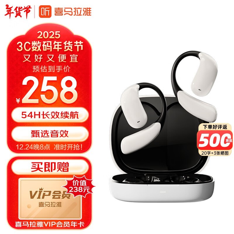 喜马拉雅金运无线蓝牙耳机,送喜马拉雅会员年卡!到手仅需216元!