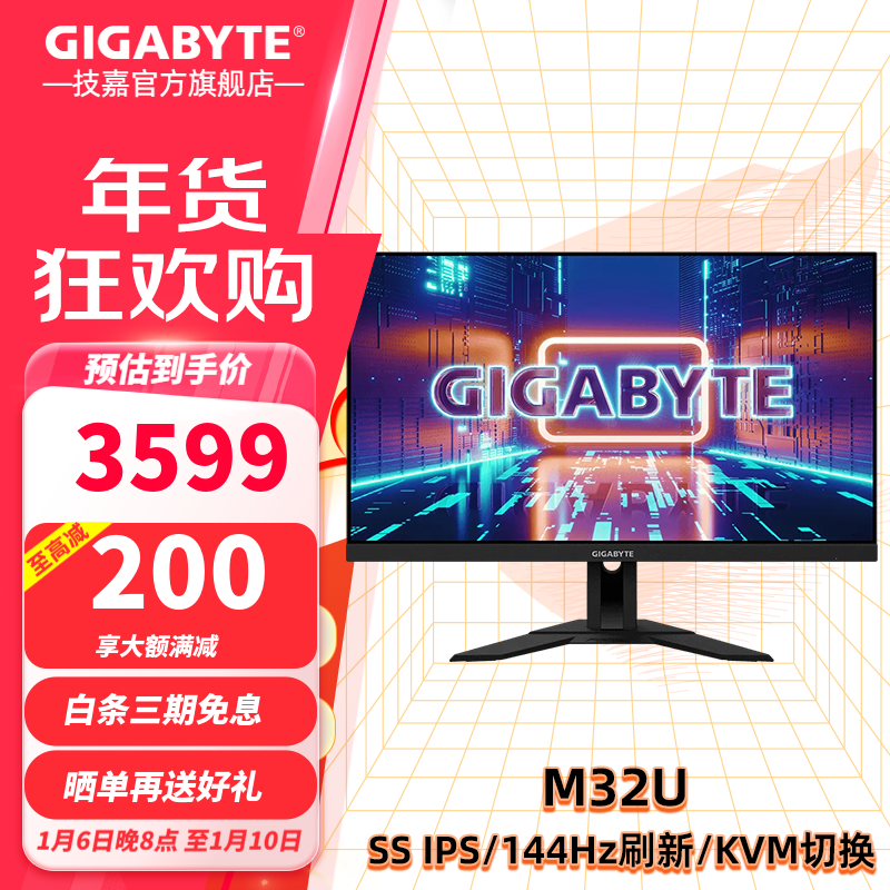 技嘉M32U显示器直降5% 31.5寸带鱼视角仅售3589元