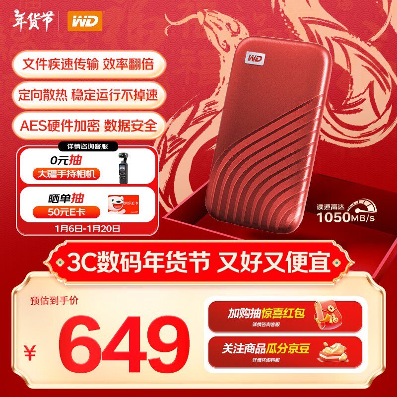 西部数据1TB高速Type-C固态移动硬盘