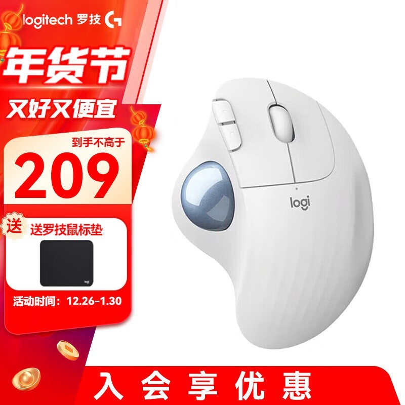 罗技 ERGO M575鼠标 人体工学设计 209元包邮