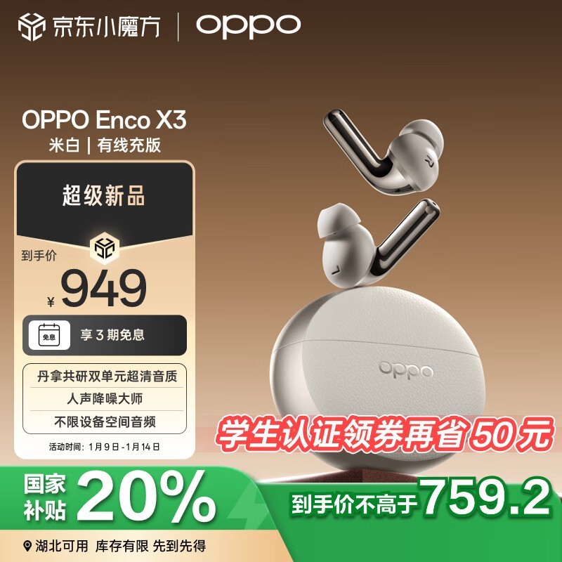 OPPO Enco X3真无线耳机智能降噪通话清晰佩戴舒适