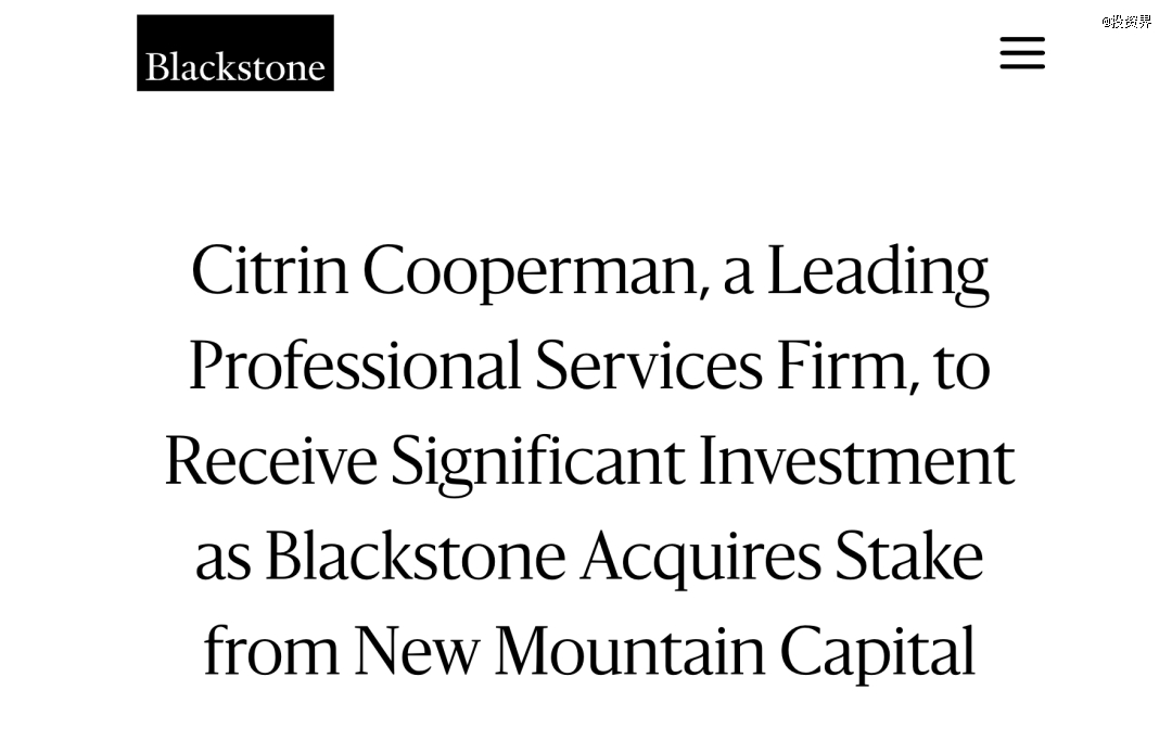 声明中表示,黑石集团与Citrin Cooperman达成重大投资最终协议。作为交易的一部分,黑石将从另一家私募股权机构New Mountain Capital手中收购其在该公司的股份。