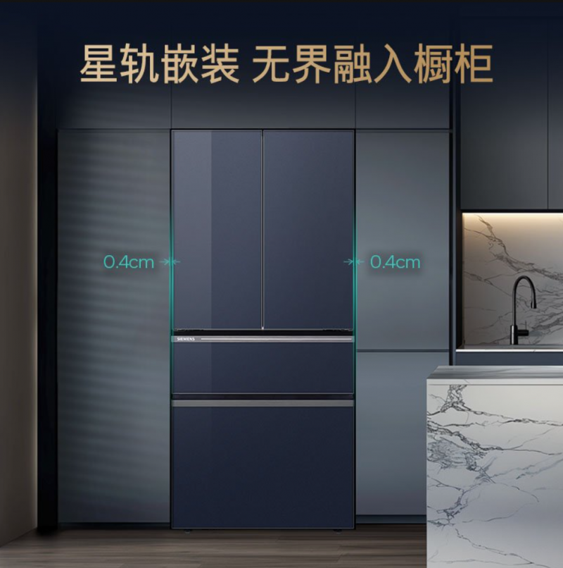 西门子超氧零度舱无界Pro多门冰箱搭载独特的星轨嵌装技术,实现了与橱柜的无缝衔接。两侧安装边距最小可至4毫米,确保冰箱在橱柜中稳固嵌入的同时,保持优雅外观。即使在紧凑的空间内,冰箱门依然可以实现95°自由开合,轻松取放食材,避免门体与橱柜发生碰撞。此外,经过超过11万次开关门疲劳测试的验证,该技术确保了冰箱在长时间使用中的稳定性与耐用性。
