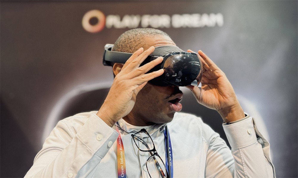 展会首日,500+全球专业观众亲身体验了玩出梦想MR的前沿科技魅力,对其14ms超低延迟的彩色VST功能、双目8K分辨率、轻盈佩戴体验给予了高度评价。本次展会现场,玩出梦想MR还吸引了全球科技、产业巨头前来交流体验。此外,众多媒体也对玩出梦想MR的表现表示惊叹。