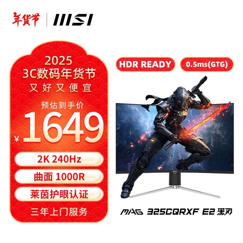 微星MAG 325CQRXF E2:2K高分辨率,240Hz电竞游戏利器,1649元性价比之选