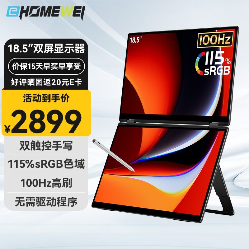 创新折叠屏显示器EHOMEWEI X2 Max:100Hz流畅体验,2899元享高效便捷双屏生活