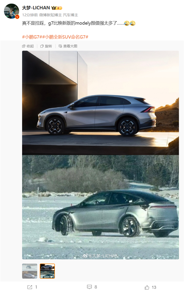 而小鹏汽车的动作也很快,随即跟着特斯拉发布了小鹏G7的官图。