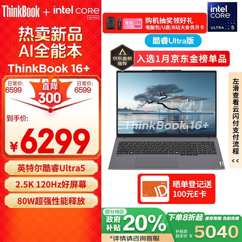 联想ThinkBook 16+ 2024款笔记本电脑仅售4851元 搭载全新设计风格