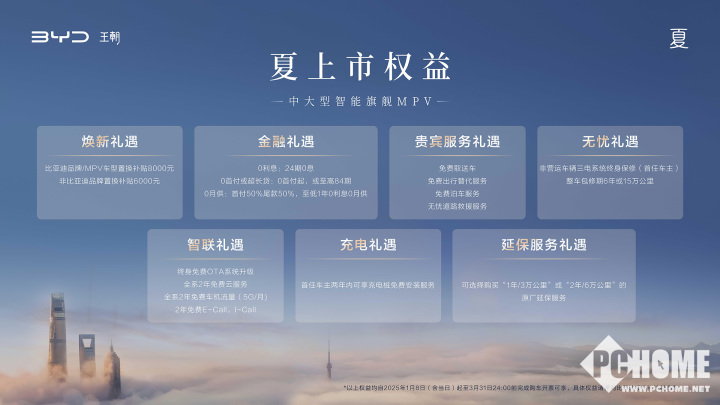 伴随夏的上市,还准备了多重购车礼遇,自上市之日至2025年3月31日24:00前完成购车开票,购买夏可享至高8000元置换补贴、0利息等多重礼遇,进一步降低消费者的购车用车成本,让更多家庭拥有高品质的美好出行。