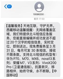 中国移动为日喀则用户免费开通北斗短信应急服务