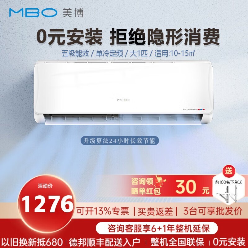 美博空调挂机1276元到手 限时优惠快来抢购