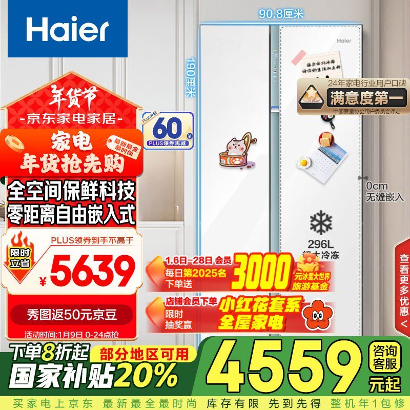 海尔双开门冰箱巨划算!国家补贴6099到手4009.68