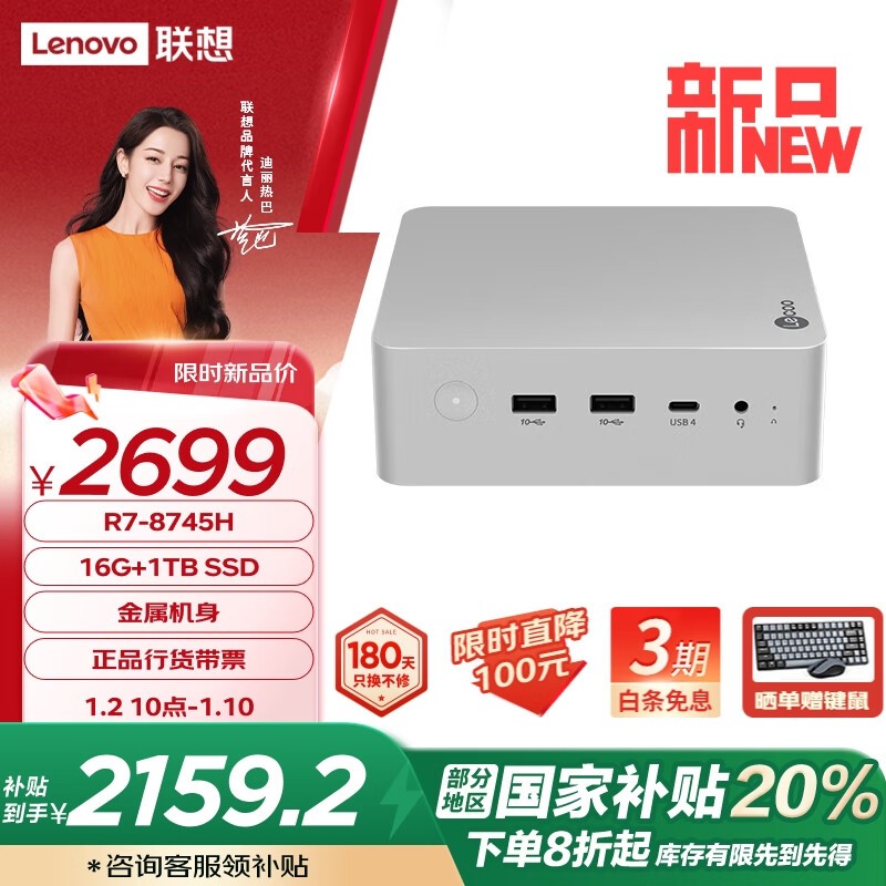 联想来酷MINI PRO台式机电脑 2124元到手近600元的优惠