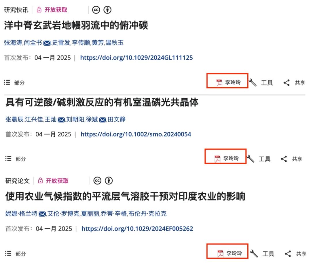 大家仔细探索后发现,任何一篇论文,尤其是在Wiley期刊的网站上,「李玲玲」的署名永远在页面的一角。