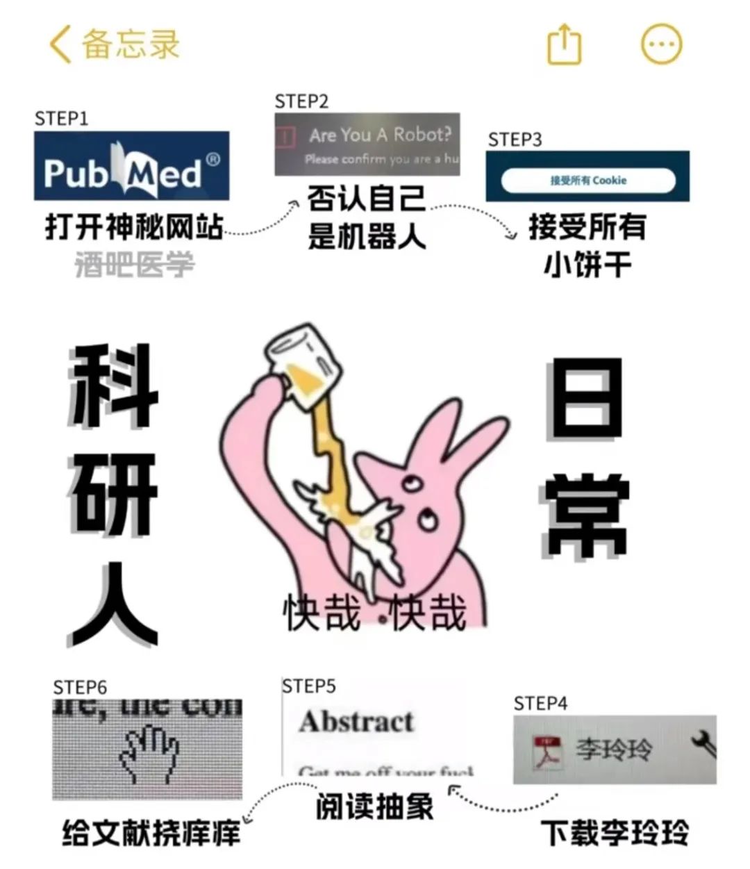 比如其中一个,是科研人搞学术的抽象N部曲: