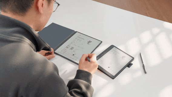 差评君一介绍我才知道,原来这是他搞到的汉王手写办公本的新品 M10 和 M10 Mini 。他和我炫耀说,科技改变生活,它们可不仅是轻薄而已。