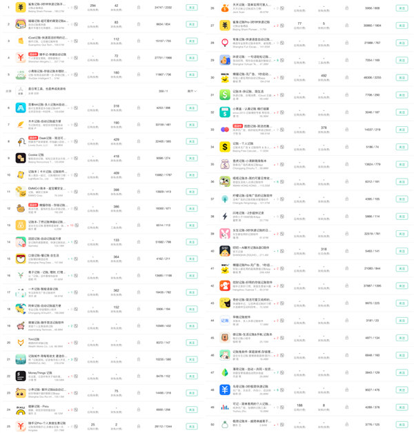 一是市面上记账 App 实在是太多了,请看图简单感受下。。。图源七麦。▼