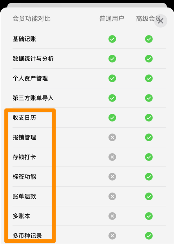 比如世超在用的 iCost ,它的基础记账功能都是免费的,像存钱、报销、退款、标签这些都需要会员的。