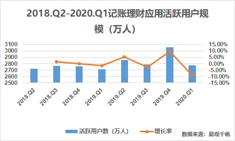 这种情况下,支付宝、微信或者某一手机系统的自动记账功能,就很难满足我们的记账需求。所以越来越多人开始下载专门的记账 App 。根据易观千帆 2020 年整理的数据,记账理财应用的活跃用户在 2700 万到 3000 万之间徘徊。