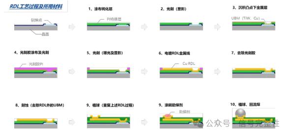 RDL 的制造过程通常包括以下步骤: