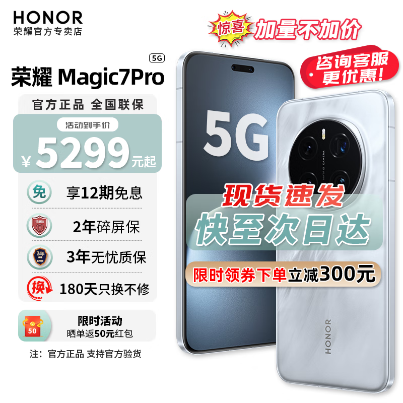 荣耀Magic7 Pro手机新品上市直降300元!