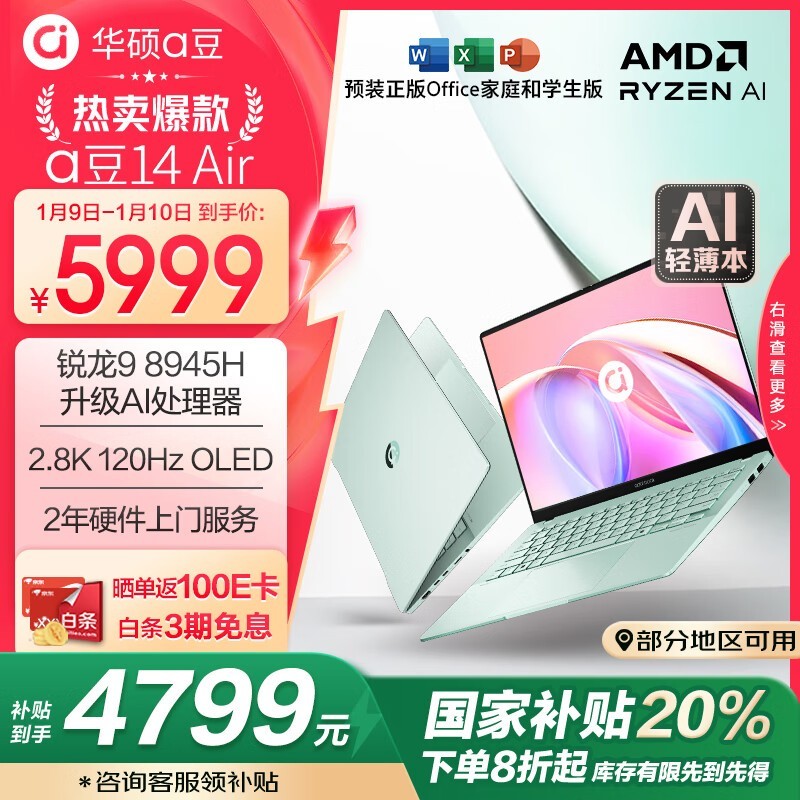 华硕a豆14 Air 八代锐龙版轻薄本3999元入手