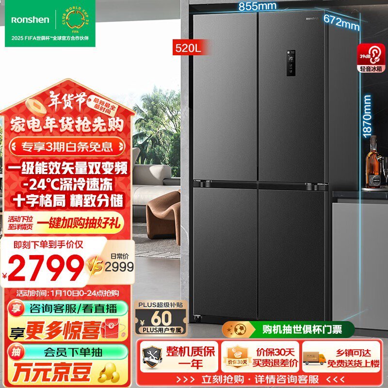 容声520升对开门冰箱到手价2158元!