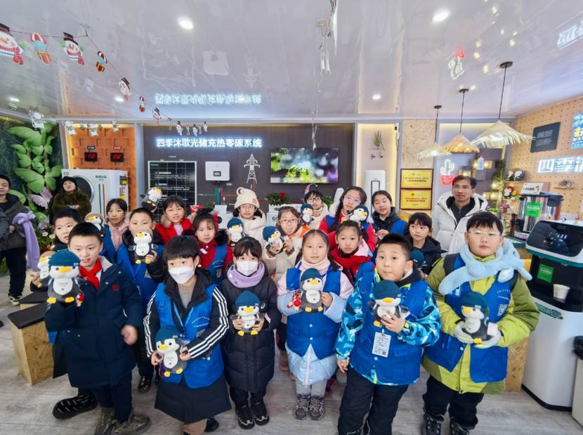 当小记者们踏入四季沐歌空气能游客温暖驿站·零碳小屋的那一刻,扑面而来的温暖瞬间将他们包围,与室外零下27℃的极寒形成了鲜明的对比。四季沐歌集团品牌总监李文平和工作人员热情地接待了小记者们,并详细为大家讲述了这座温暖驿站·零碳小屋的创新科技和四季沐歌空气能在助力全球碳减排事业所做出的杰出贡献。深入浅出的讲解,让哈尔滨青年宫新闻学院的小记者们对这一绿色、洁净的热泵科技有了初步了解,也对其充满了浓浓的兴趣和好感。