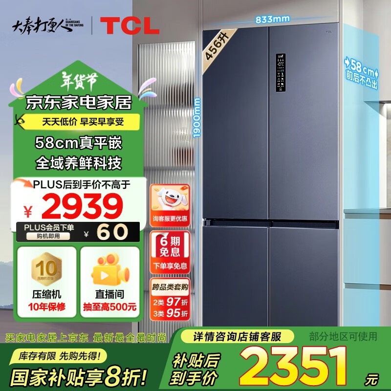 零嵌冰箱新高度!TCL超薄零嵌冰箱仅售1853元