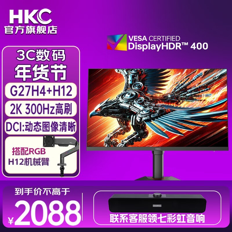 HKC 惠科 27英寸2K原生300Hz超高刷显示器只要1848元!